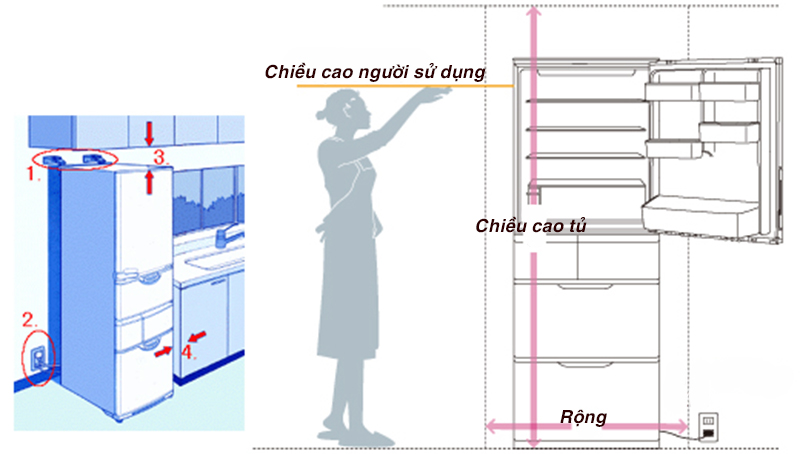 Ngoài ra, khi lắp đặt tủ lạnh, bạn nên bố trí nó ở nơi thông thoáng, tránh xa các khu vực có nhiệt độ cao như bếp. Điều này giúp giảm nguy cơ cháy nổ và duy trì hiệu suất làm lạnh của tủ. Cần giữ khoảng cách tối thiểu là 10 cm với tường phía sau và 2 cm ở hai bên để không khí có thể lưu thông quanh tủ lạnh.