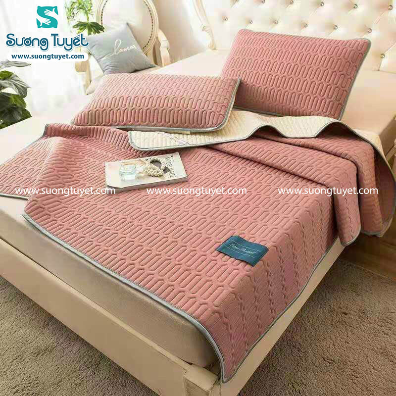Khi trải chiếu lên giường, nhớ trải trên bề mặt phẳng và cố định nó với nệm để tránh bị trượt. Cấu tạo của chiếu bao gồm ba lớp với bề mặt vải mát mịn, lớp cao su non và lớp chống trượt bên dưới, đảm bảo bạn có giấc ngủ thoải mái vào mùa hè.