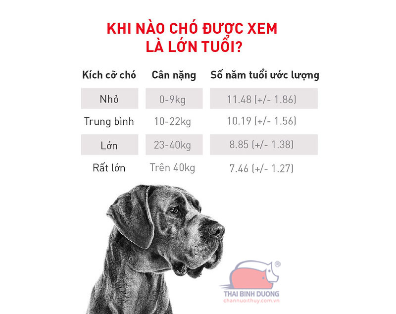 Tùy kích cỡ chó nữa nhé: chó nhỏ sống lâu hơn, chó lớn già nhanh hơn. Chó nhỏ thường “già” từ 9-10 tuổi, còn chó lớn sớm hơn. Dùng bảng quy đổi theo giống sẽ chuẩn hơn, giúp bạn chăm sóc đúng cách, từ dinh dưỡng đến kiểm tra sức khỏe.