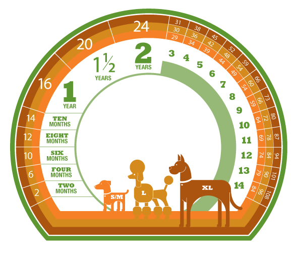 Thực tế, năm đầu tiên của chó tương đương khoảng 15 năm tuổi người, năm thứ hai thêm chừng 9 năm nữa. Sau đó, mỗi năm chỉ bằng 4-5 năm người thôi. Ví dụ, chú chó 4 tuổi đã như người 34 tuổi rồi đấy!