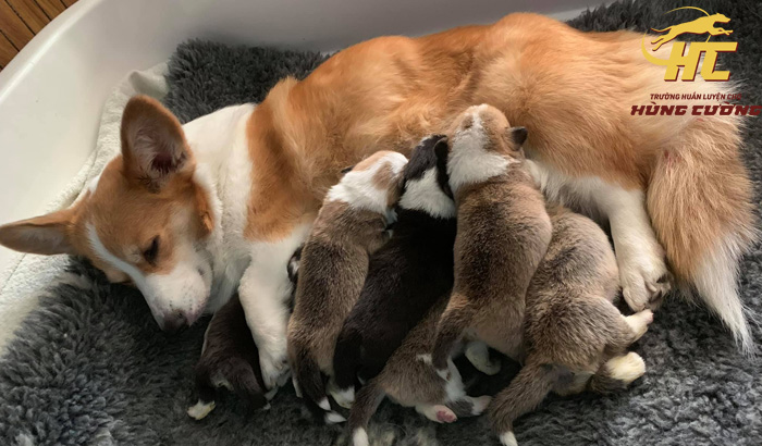 Chó Corgi mẹ thường mang thai khoảng 63-68 ngày, tùy số lượng chó con trong bụng. Khi đàn con chào đời, chúng cần bú sữa mẹ hoàn toàn trong tháng đầu tiên để hệ tiêu hóa non nớt phát triển tốt và tăng sức đề kháng.