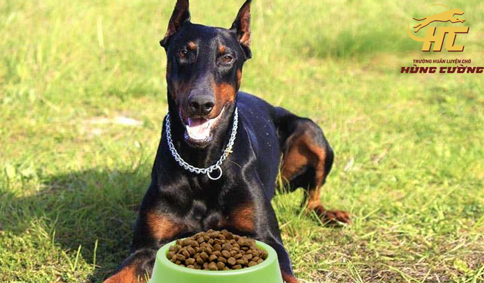 Thức ăn khô chuyên dụng cũng hay ho, giàu khoáng chất, tiện lợi cho chủ bận rộn. Hãy hỏi bác sĩ thú y để chọn loại phù hợp, tránh thừa cân vì Doberman dễ béo nếu ăn quá no.