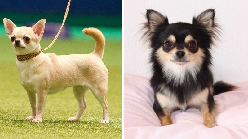 Phân biệt Chihuahua thuần chủng khá dễ nếu bạn để ý. Chúng có bộ lông đa dạng: lông ngắn ôm sát thân, phổ biến hơn ở ta, chỉ dày hơn ở cổ và bụng; còn lông dài mượt mà, phủ từ tai đến đuôi như rẻ quạt. Màu lông thì “đa sắc cầu vồng” – kem, trắng, vàng, nâu, socola, đen vàng… Điểm quan trọng: chiều cao ngắn hơn chiều dài thân, mắt ít lồi, mõm gọn, không cong như giống lai.