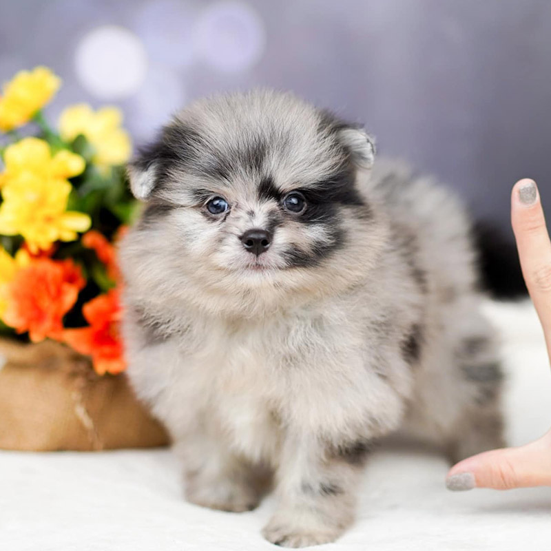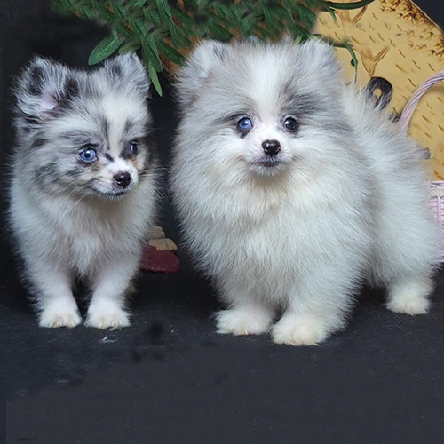 Chó Phốc Sóc màu Blue Merle là một biến thể đẹp mê ly của giống Pomeranian, với bộ lông tạo hiệu ứng lốm đốm như đá cẩm thạch xanh lam huyền ảo. Màu sắc này thuộc họ xanh lam, pha trộn xanh nhạt, xám, đen và chút rám nắng, khiến mỗi chú cún trông như một tác phẩm nghệ thuật độc nhất.