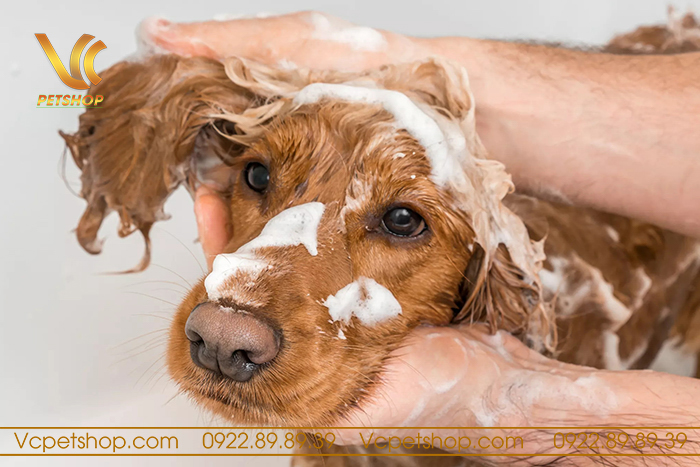 Chọn sữa tắm chuyên cho chó, thoa đều rồi massage nhẹ vùng bụng, chân, đuôi – những chỗ dễ bẩn. Xả sạch bọt đến khi không còn nhớt, tránh để sót gây kích ứng da.