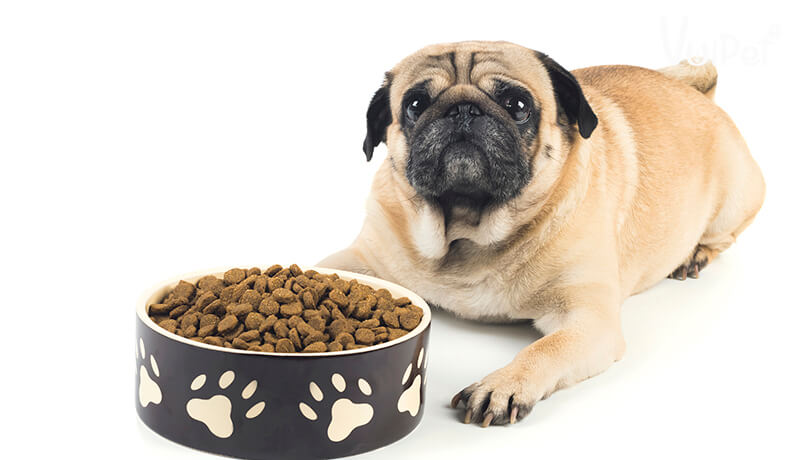 Pug dễ béo phì do ham ăn và lười vận động, nên thức ăn khô kiểm soát calo tốt hơn, giữ thân hình vuông vắn gọn gàng. Nhưng mũi ngắn, đường thở hẹp khiến chúng khó thở khi nóng, thức ăn khô đôi khi làm khô miệng thêm.