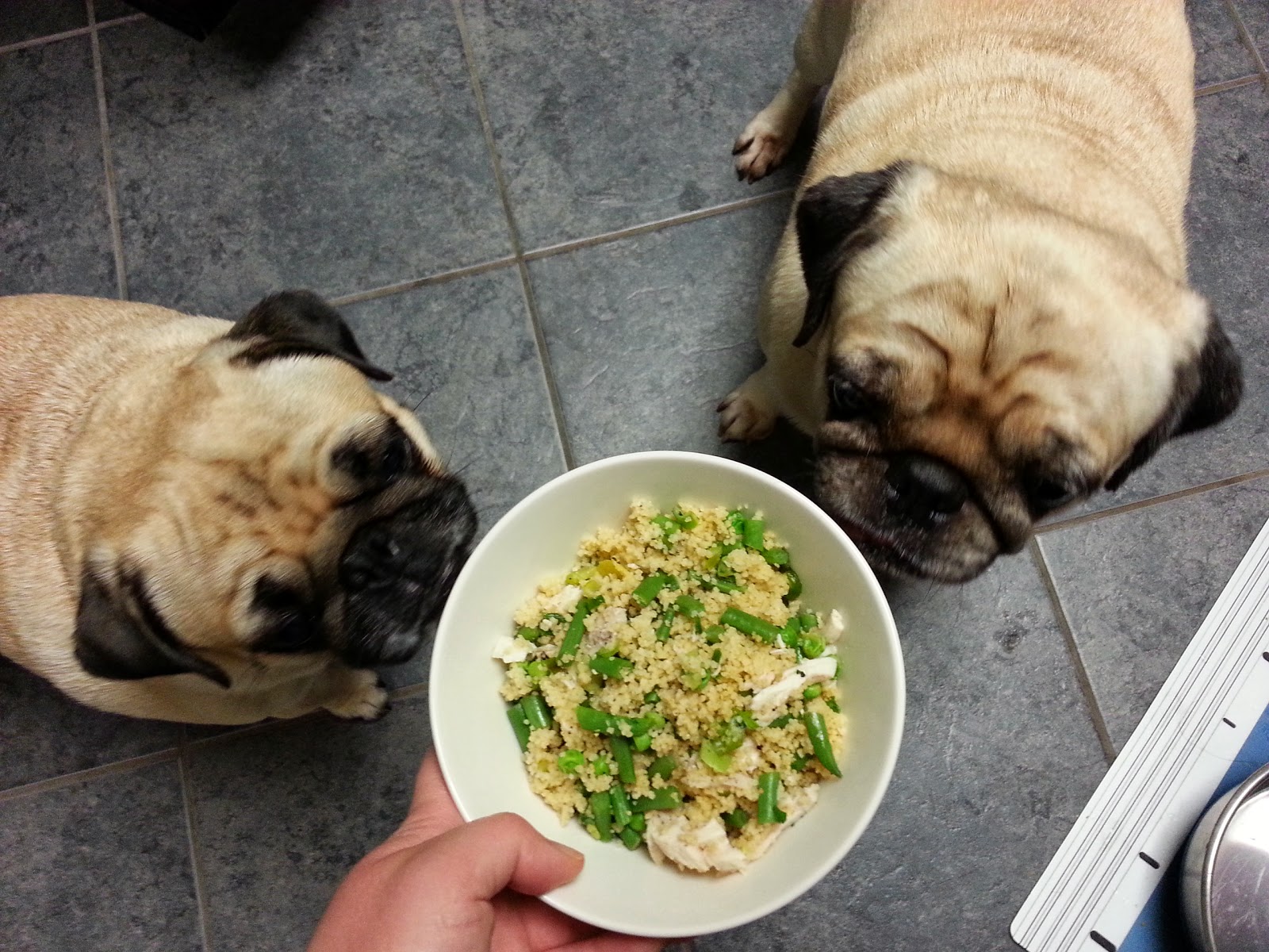 Chất béo bổ sung vừa phải từ mỡ cá, mỡ gà hoặc dầu thực vật, tránh mỡ lợn để không tăng cân. Thêm tôm, cua, trái cây ít ngọt như nho nữa nhé, nhưng xay nhuyễn cho Pug con dễ ăn.