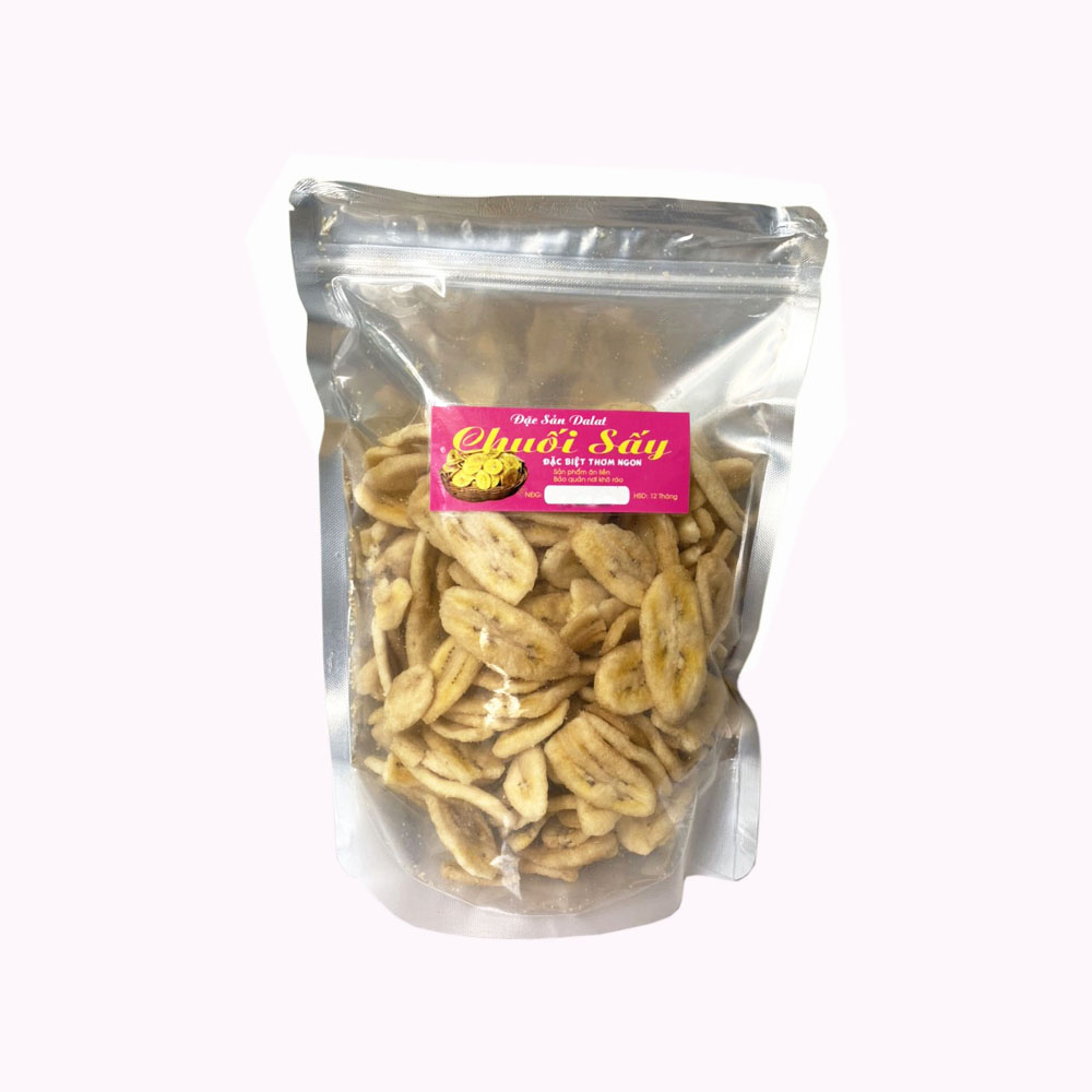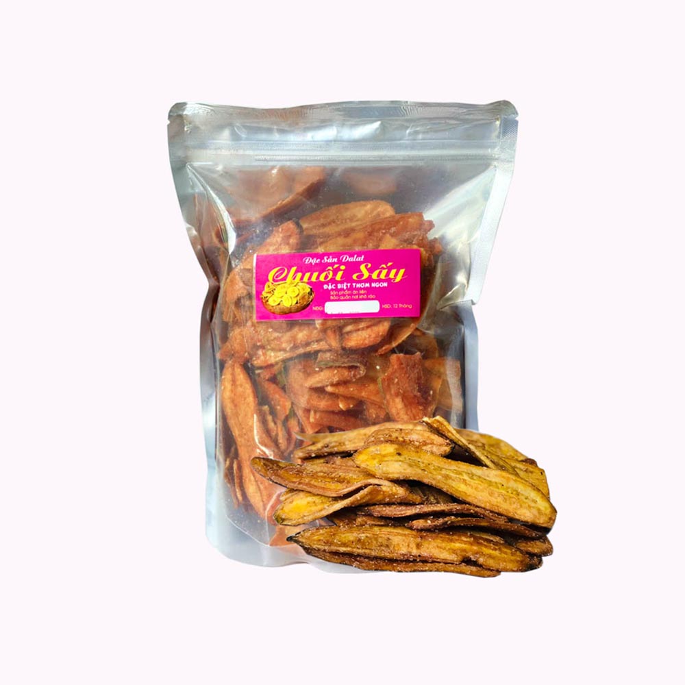 Nếu bạn đang tìm kiếm chuối sấy khô Đà Lạt ngon và chất lượng, có nhiều lựa chọn tuyệt vời để bạn thử. Một trong những sản phẩm nổi bật là chuối sấy giòn với độ ẩm ≤ 10%, được chế biến từ chuối tươi chín, đường, dầu olein và muối. Mỗi túi 500g được đóng gói chắc chắn, bảo quản dễ dàng và hạn sử dụng lên đến 6 tháng.
