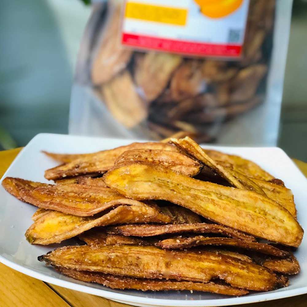 Quá trình chế biến chuối sấy diễn ra cẩn thận, để giữ lại hương vị tự nhiên và chất dinh dưỡng. Độ ẩm của sản phẩm luôn được kiểm soát dưới 10%, giúp cho chuối sấy có độ giòn và thơm ngon. Mỗi gói chuối sấy khô nặng 500g, rất tiện lợi để mang theo trong các buổi đi dã ngoại, gặp mặt bạn bè hay đơn giản là khi bạn cần một món ăn nhẹ cho khi làm việc.