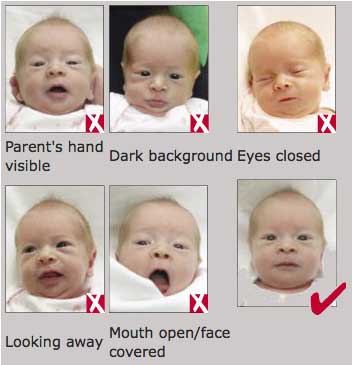 Hình hộ chiếu trẻ sơ sinh quy định rõ ràng về kích thước và biểu cảm