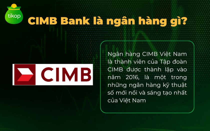 CIMB Bank Vietnam, thành lập năm 2016, là một phần của CIMB Group – một ngân hàng hàng đầu ở ASEAN với kinh nghiệm dày dạn trong ngành tài chính. Ngân hàng này ra đời với mục tiêu mang đến một mô hình ngân hàng số khác biệt và đột phá, chủ yếu nhằm phục vụ nhu cầu giao dịch của khách hàng một cách nhanh chóng và tiện lợi.