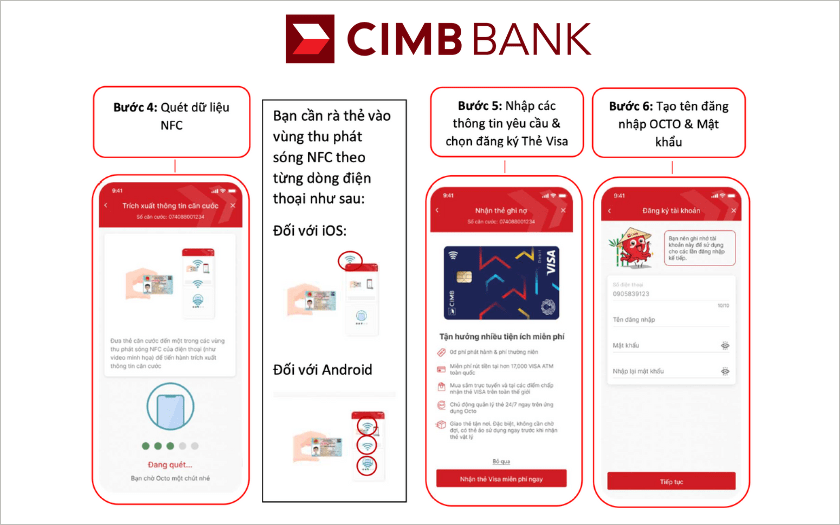 Quá trình xét duyệt hồ sơ của CIMB diễn ra nhanh chóng, chỉ trong tối đa 15 phút làm việc sau khi nhận đủ hồ sơ. Điều đặc biệt là với công nghệ eKYC, bạn không cần phải đến ngân hàng để thực hiện định danh. Chỉ với hai bức ảnh CMND/CCCD và một bức ảnh selfie, bạn đã có thể hoàn tất đăng ký.