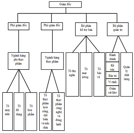 Vinmart, hệ thống siêu thị thuộc tập đoàn Vingroup, không chỉ nổi bật nhờ chất lượng hàng hóa mà còn nhờ vào cơ cấu tổ chức rõ ràng và hiệu quả. Tại đây, Giám đốc là người chỉ đạo, giám sát mọi hoạt động của các Phó Giám đốc, mỗi người chuyên trách một lĩnh vực nhất định. Ví dụ, bộ phận nhận hàng chịu trách nhiệm tiếp nhận và kiểm tra chất lượng hàng hóa từ các nhà cung cấp.