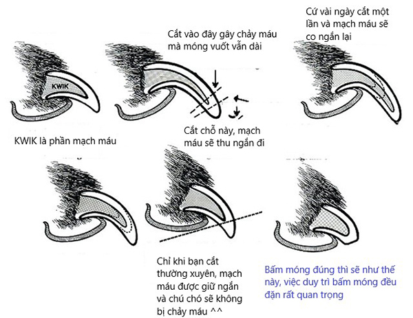 Nhớ dùng kéo chuyên dụng, chỉ cắt phần trắng sắc nhọn, tránh phần hồng có mạch máu để bé không đau. Cắt 2-4 tuần/lần, vuốt ve bé trước để quen dần. Nếu lo, hỏi bác sĩ thú y cho chắc ăn!