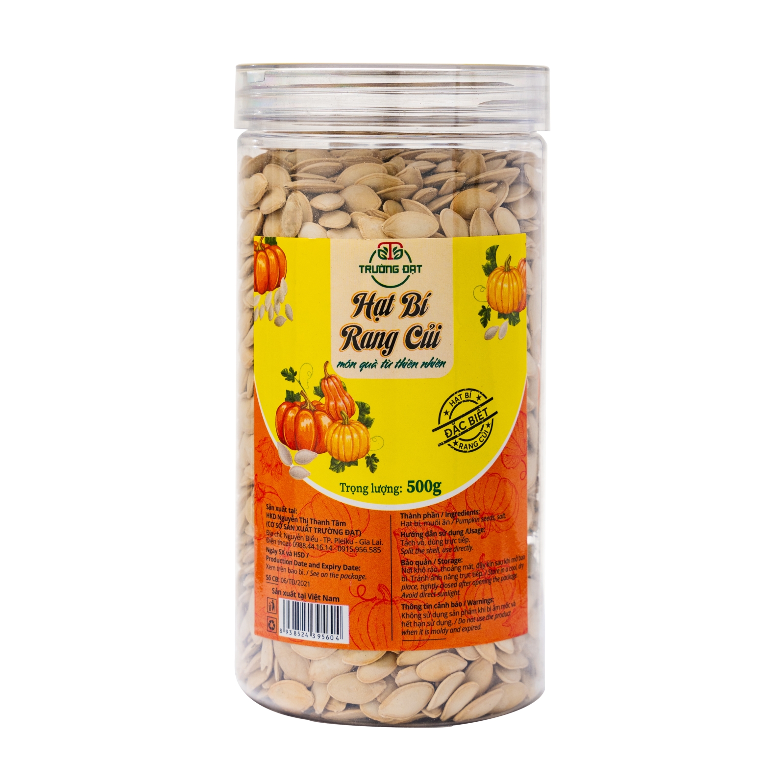 Hạt bí Rang củi Trường Đạt là một trong những sản phẩm tiêu biểu, được chế biến theo phương pháp rang muối truyền thống. Mỗi túi hạt 500g không chỉ thơm ngon mà còn mang đến trải nghiệm ăn vặt tuyệt vời cho mọi người. Chúng tôi cũng cung cấp hạt bí xanh tách vỏ, chúng được sản xuất từ nguồn nguyên liệu chất lượng, mang lại sự yên tâm cho sức khỏe của khách hàng.
