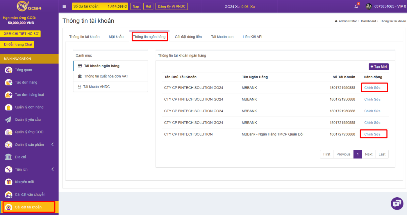 Cập nhật thông tin số tài khoản ngân hàng chính xác bạn nhé