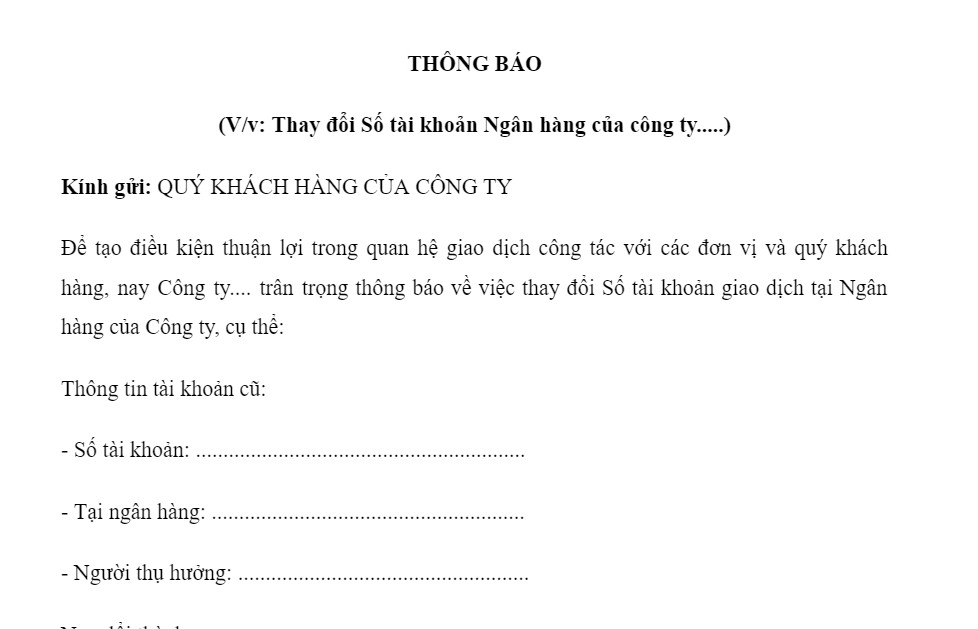Cuối cùng, hãy thông báo cho đối tác và khách hàng về việc thay đổi số tài khoản ít nhất 1-2 tuần trước khi tài khoản mới có hiệu lực, giúp họ kịp thời điều chỉnh các giao dịch. Hy vọng rằng với những bước trên, việc thay đổi số tài khoản của bạn sẽ diễn ra suôn sẻ!