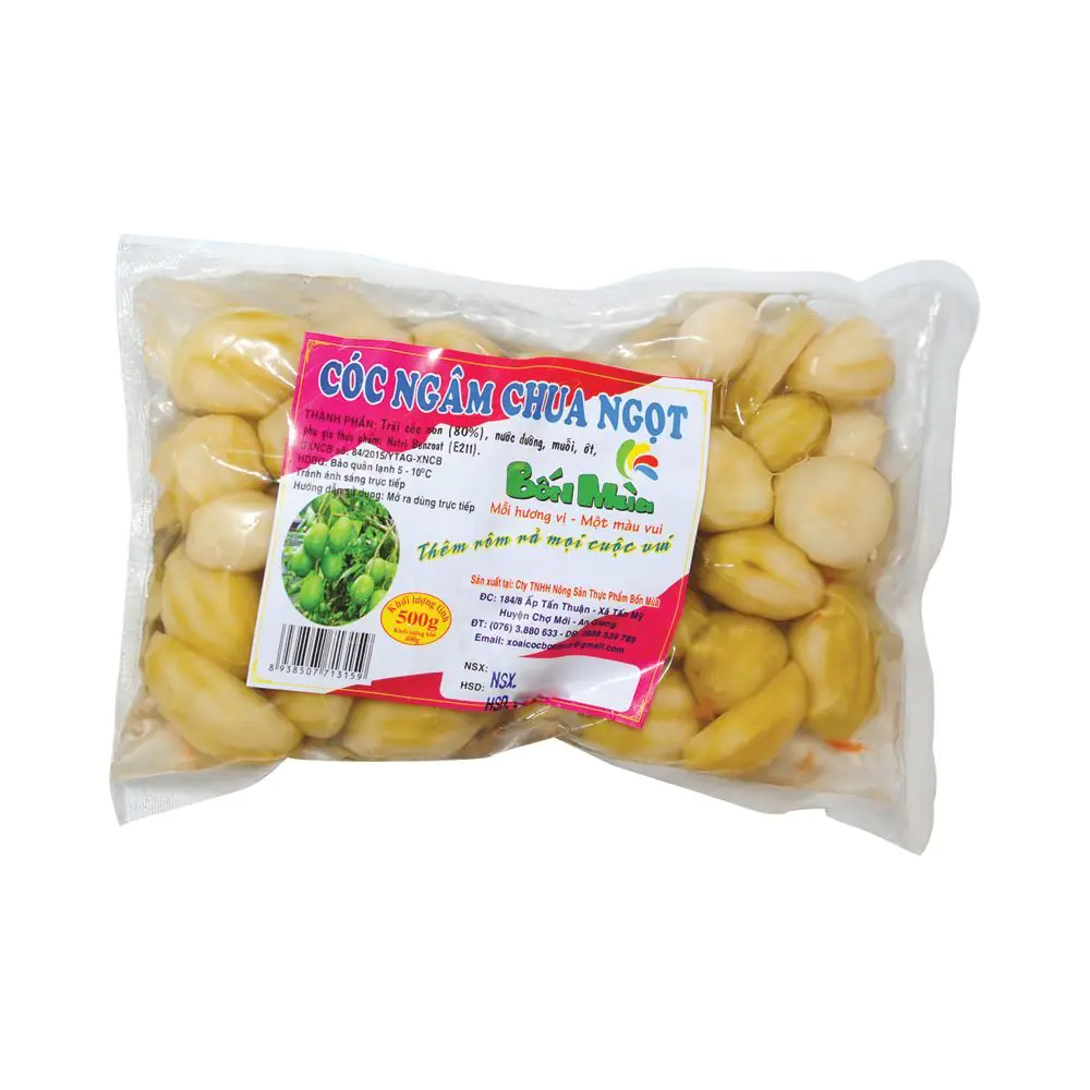 Cóc ngâm chua ngọt không chỉ là món ăn vặt hấp dẫn mà còn là một trải nghiệm thú vị cho bất kỳ ai yêu thích vị chua chua, ngọt ngọt. Bạn có thể dễ dàng mua cóc ngâm chua ngọt Bốn Mùa gói 500g tại Bách Hóa XANH hoặc MM Mega Market. Những sản phẩm này đều được làm từ nguyên liệu tươi ngon, chế biến an toàn và chất lượng, đảm bảo mang đến hương vị tuyệt vời nhất.