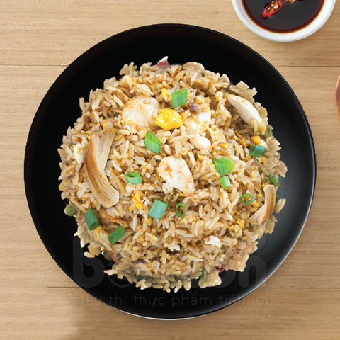 Cơm chiên được chế biến từ gạo ST, chiên giòn và hòa quyện với vị mặn mà của cá và thịt gà xé, tạo nên một hương vị mới mẻ, lôi cuốn vị giác. Đặc biệt, mỗi suất cơm chỉ mất vài phút hâm nóng là bạn đã có thể thưởng thức ngay, rất tiện lợi cho những ai bận rộn.