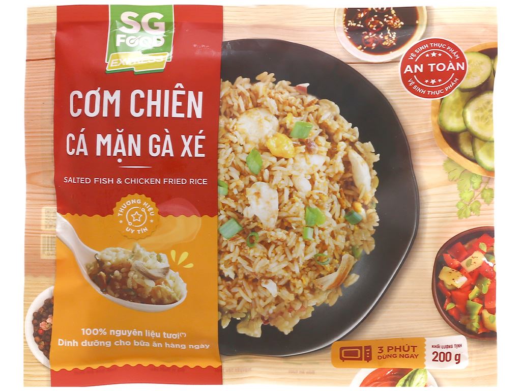 Với định lượng 200g, Cơm Chiên Cá Mặn Gà Xé SG Food được chế biến sẵn, rất tiện lợi cho những ai bận rộn. Chỉ cần hâm nóng một chút là bạn đã có ngay bữa ăn thơm ngon, giàu dinh dưỡng. Món ăn này thực sự là sự lựa chọn thông minh cho bữa sáng hay ăn trưa tại văn phòng.
