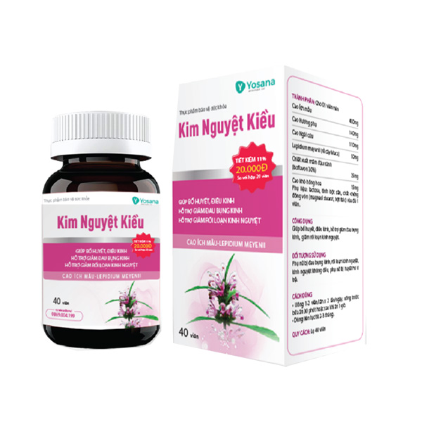 Sản phẩm thường được đóng gói dưới dạng hộp 20 hoặc 40 viên, tiện lợi cho việc sử dụng và bảo quản. Thành phần chính của Kim Nguyệt Kiều gồm các thảo dược như cao ích mẫu, giúp hỗ trợ giảm các triệu chứng khó chịu trong kỳ kinh nguyệt như đau bụng, mệt mỏi, nóng trong người. Nhiều người dùng phản hồi tích cực về hiệu quả của sản phẩm trong việc cải thiện rối loạn kinh nguyệt.