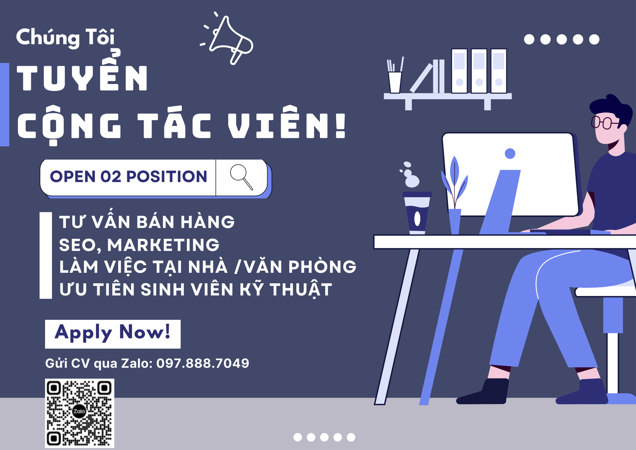 Chào các bạn, hiện tại công ty chúng tôi đang tìm kiếm cộng tác viên SEO online để gia nhập vào đội ngũ sáng tạo nội dung. Chúng tôi cần 5 bạn có kiến thức cơ bản về SEO và yêu thích viết lách. Nếu bạn là người mê khám phá cách tối ưu hóa nội dung và muốn có thêm thu nhập từ công việc online, đây sẽ là cơ hội tuyệt vời dành cho bạn.