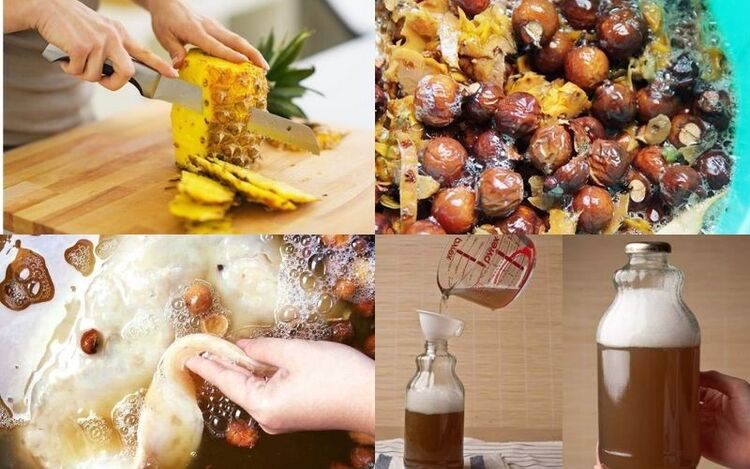 Hoặc ủ enzyme bồ hòn với dứa: 1kg bồ hòn tách hạt, 3kg dứa, 1kg đường nâu, vỏ cam và 10 lít nước. Trộn đều, đậy kín ủ 3 tháng, khuấy hàng ngày. Phần nước trong dùng giặt siêu hữu cơ!