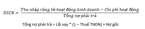 Công thức tính DSCR cụ thể là: DSCR = (Thu nhập hoạt động ròng) / (Tổng nợ phải trả). Khi tỷ lệ DSCR lớn hơn 1, điều này chứng tỏ doanh nghiệp có đủ khả năng thanh toán các nghĩa vụ nợ hiện tại. Ngược lại, nếu DSCR nhỏ hơn 1, doanh nghiệp có thể gặp khó khăn trong việc chi trả các khoản nợ của mình.