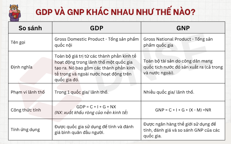 Để so sánh, GNP có thể được tính từ GDP bằng cách cộng thêm thu nhập ròng từ nước ngoài. Nhờ vào đó, GNP giúp chúng ta hiểu rõ hơn sức mạnh kinh tế và sự đóng góp của công dân trong nước lẫn ở nước ngoài, từ đó có cái nhìn toàn diện hơn về nền kinh tế quốc gia.