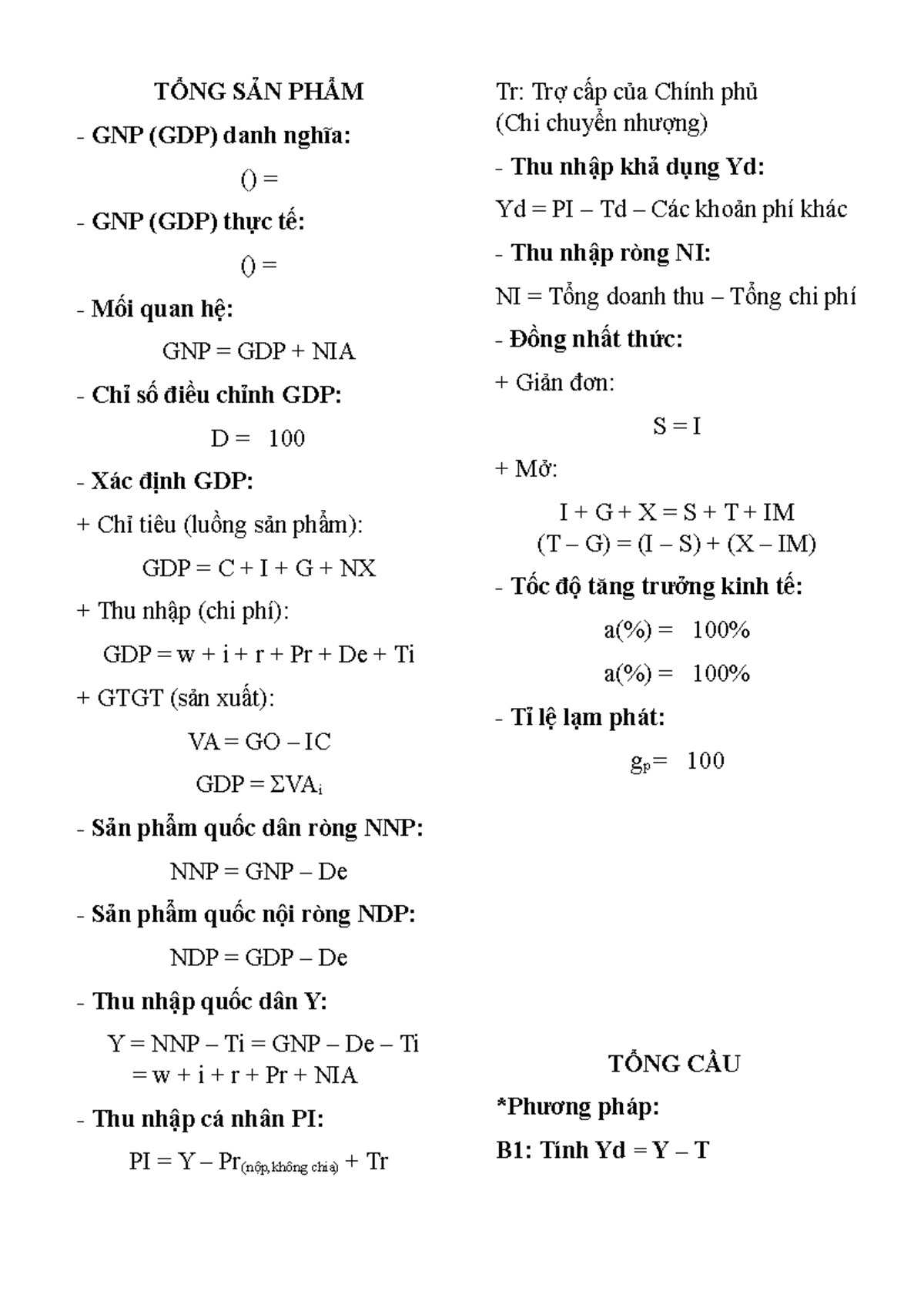 Công thức tính Tổng sản phẩm quốc gia (GNP) rất quan trọng trong việc đo lường sức khỏe kinh tế của một quốc gia. GNP được tính theo công thức: GNP = C + I + G + (X – M) + NR, trong đó C là tiêu dùng, I là đầu tư, G là chi tiêu của chính phủ, X và M lần lượt là xuất khẩu và nhập khẩu, còn NR là thu nhập ròng từ nước ngoài.