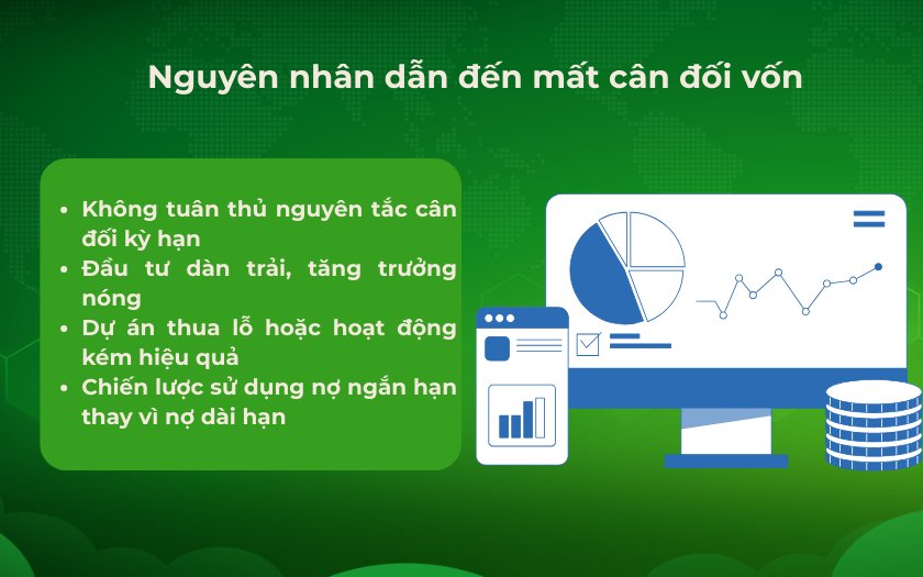 Nguyên nhân dẫn đến mất cân đối vốn thường có thể xuất phát từ thị trường kém phát triển, chính sách tài chính không ổn định, hoặc chi phí sản xuất gia tăng. Do đó, doanh nghiệp cần có những biện pháp khắc phục phù hợp như cơ cấu lại kỳ hạn vay hoặc tối ưu hóa quản lý tài sản.
