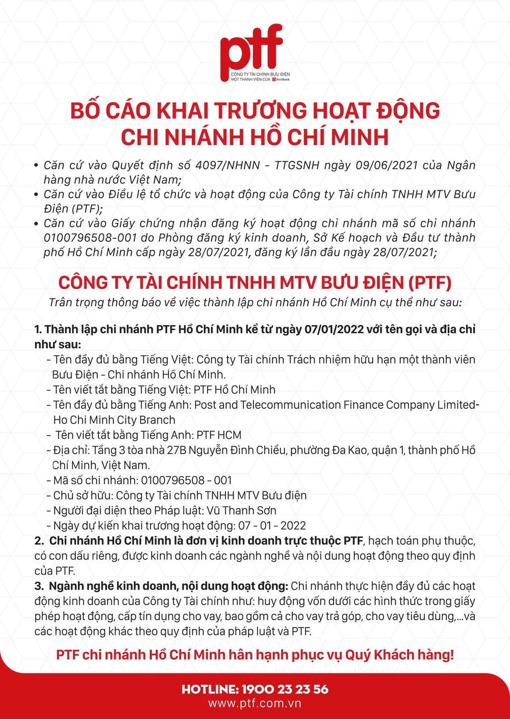 Công ty Tài chính PTF, hay còn gọi là Công ty Tài chính TNHH Một Thành Viên Bưu Điện, được thành lập vào năm 1998 và thuộc quyền quản lý của Tập đoàn Bưu chính Viễn thông Việt Nam (VNPT). Đây là một trong những công ty tài chính phi ngân hàng đầu tiên tại Việt Nam, nổi bật với việc cung cấp các sản phẩm vay tiền mặt không cần tài sản đảm bảo, kèm theo thủ tục nhanh chóng và minh bạch.