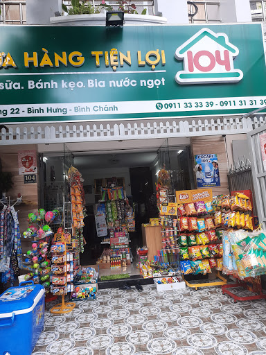 Cửa hàng tiện lợi 104, tọa lạc tại 104 Đường số 22, Bình Hưng, Bình Chánh, Hồ Chí Minh, là một điểm đến lý tưởng cho những ai cần mua sắm nhanh chóng và tiện lợi. Cửa hàng cung cấp đa dạng các sản phẩm như thực phẩm khô, đồ uống, bánh kẹo, và các sản phẩm chăm sóc cá nhân. Ngoài ra, cửa hàng cũng có thể phục vụ nhu cầu ăn uống nhanh với các món như mì trộn, bánh mì kẹp, và xúc xích nướng.