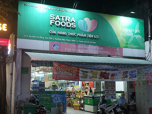 Cửa hàng Satrafoods tại địa chỉ 1 Đ. Nguyễn Thị Đặng, Khu phố 2, Quận 12, Hồ Chí Minh, là một phần của chuỗi cửa hàng thực phẩm tiện lợi nổi tiếng của Tổng Công ty Thương mại Sài Gòn (SATRA). Cửa hàng này cung cấp đa dạng các sản phẩm như rau củ quả tươi, trái cây nội địa và nhập khẩu, thịt heo VietGAP, thực phẩm sơ chế, và nhiều mặt hàng gia dụng khác. Dịch vụ của Satrafoods bao gồm đặt hàng qua điện thoại, mua sắm trực tuyến, giao hàng tận nhà với mức phí hợp lý, và giữ xe miễn phí cho khách hàng.