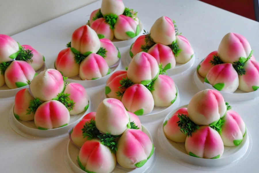 Bên cạnh bánh bao, những hình ảnh như quả đào trong mâm cúng cũng tạo nên bức tranh trọn vẹn của sự tươi trẻ, trường thọ và hạnh phúc. Tất cả những điều này đều thể hiện ước vọng về cuộc sống viên mãn, dư dả và tràn đầy yêu thương trong gia đình.