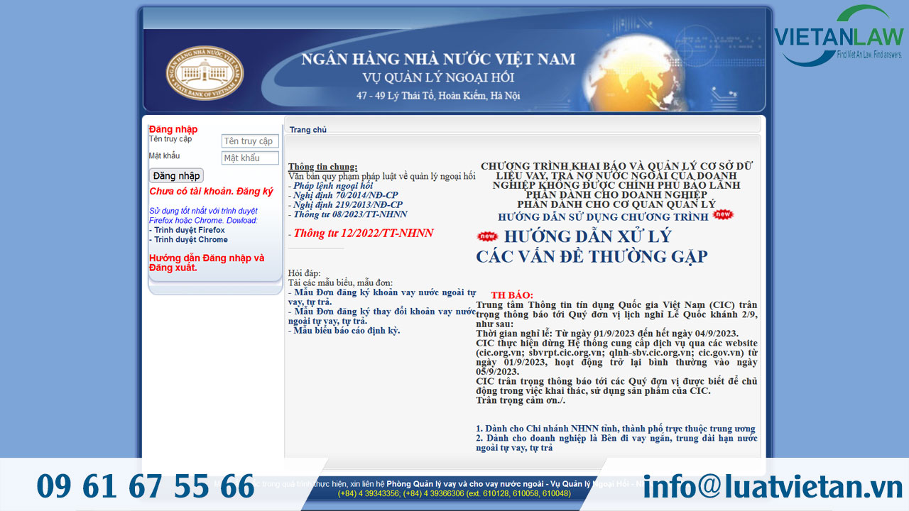 Tiếp theo, để đăng ký trực tuyến, doanh nghiệp phải đăng ký tài khoản truy cập Trang điện tử theo khoản 3 Điều 10 Thông tư 12/2022/TT-NHNN. Sau khi có tài khoản, người dùng đăng nhập, thực hiện nhập tờ khai, tải lên hồ sơ và hoàn tất bước “Đăng ký khoản vay nước ngoài” theo hướng dẫn trên hệ thống.