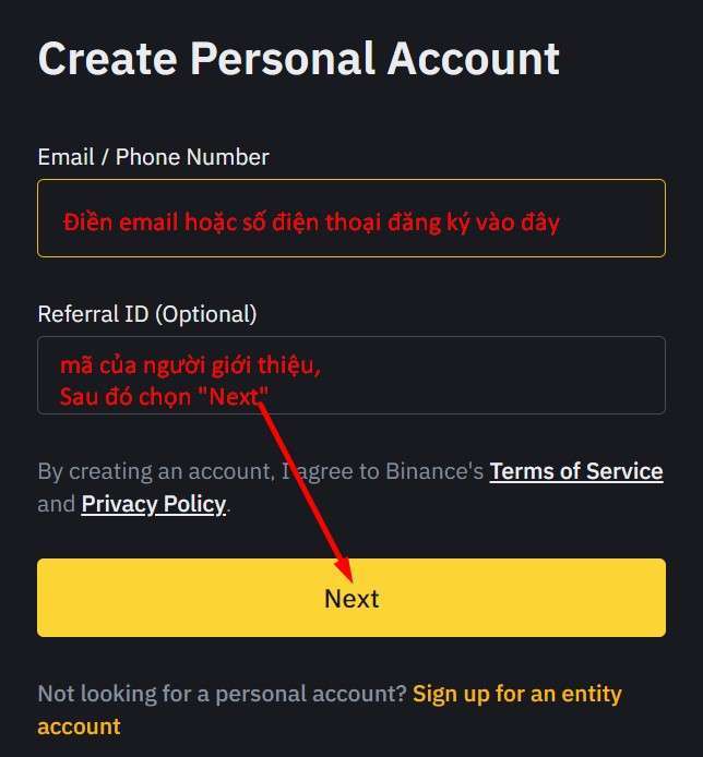 Sau khi điền thông tin, Binance sẽ gửi mã xác minh về email hoặc điện thoại của bạn. Bạn chỉ cần nhập mã này để hoàn tất bước xác minh cơ bản. Đừng quên đọc kỹ và đồng ý với điều khoản dịch vụ của Binance trước khi nhấn nút đăng ký để hoàn tất quá trình.