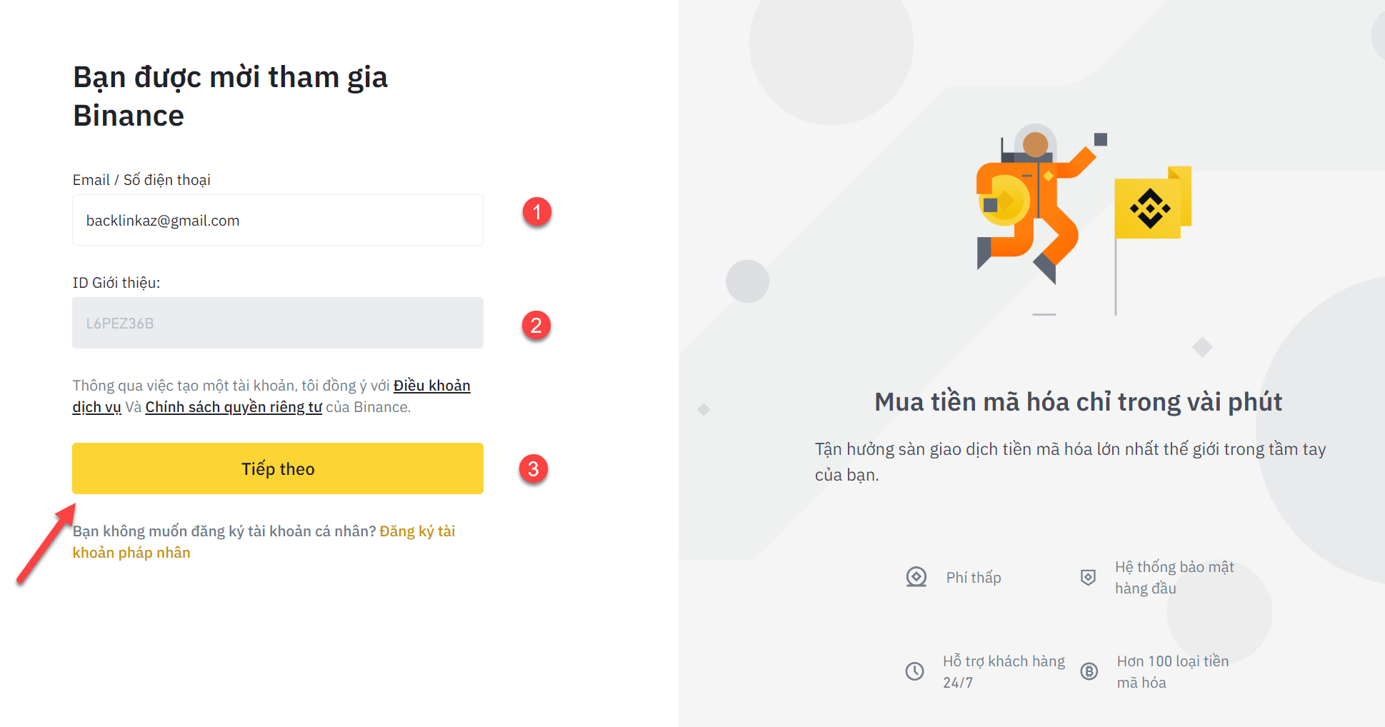 Bạn chỉ cần truy cập trang chủ Binance, chọn đăng ký bằng email hoặc số điện thoại, nhập thông tin cá nhân và tạo mật khẩu bảo mật mạnh. Sau đó, bạn sẽ nhận được mã xác minh gửi về email hoặc điện thoại để hoàn tất quá trình đăng ký. Việc tự đăng ký giúp bạn kiểm soát hoàn toàn tài khoản, đảm bảo an toàn và tuân thủ đúng quy định của sàn.