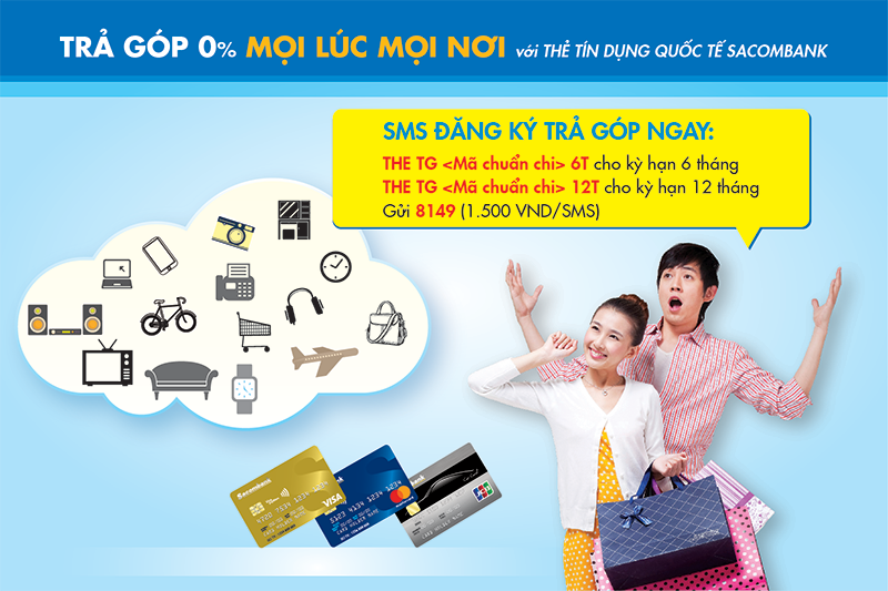Chương trình trả góp này áp dụng cho giao dịch tối thiểu là 1 triệu đồng, với lãi suất 0% giúp bạn dễ dàng quản lý tài chính. Nếu bạn đã có thẻ tín dụng Sacombank, chỉ cần gửi SMS đến số 8149 để đăng ký chuyển đổi trả góp sau khi thực hiện thanh toán.