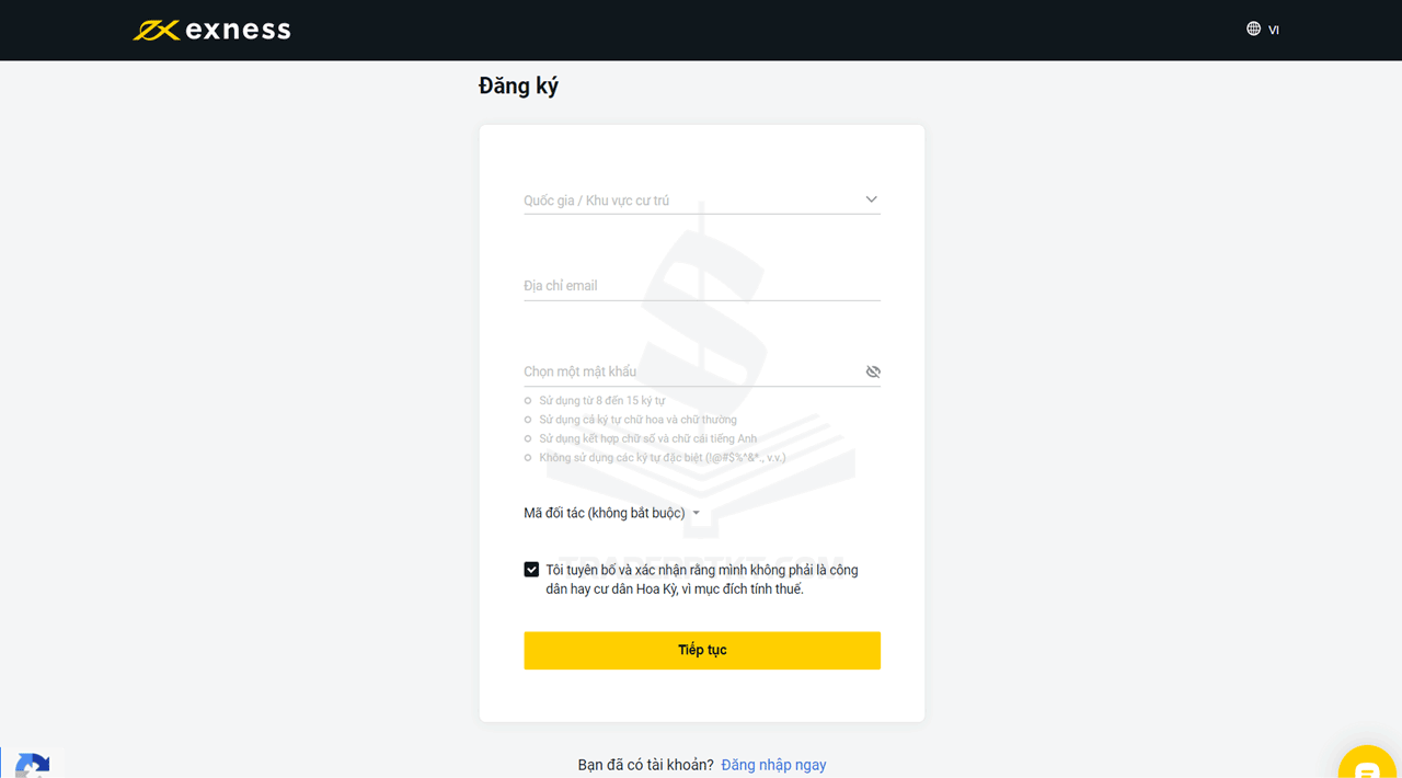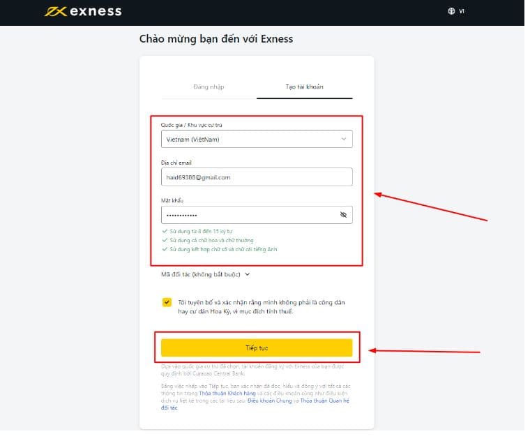 Nếu bạn chưa có tài khoản, quá trình đăng ký khá nhanh chóng. Bạn chỉ cần cung cấp các thông tin cơ bản như họ tên, ngày sinh, email, số điện thoại và tạo mật khẩu bảo mật. Sau đó, Exness sẽ gửi mã xác minh qua email hoặc điện thoại để bạn hoàn tất bước kích hoạt tài khoản. Việc xác minh danh tính và địa chỉ cũng rất quan trọng để đảm bảo an toàn và sử dụng đầy đủ tính năng của sàn.