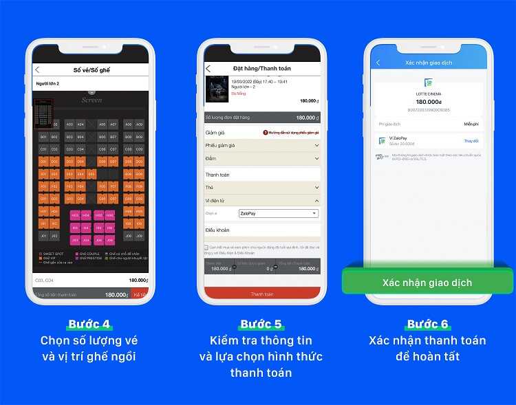 Khi đã hoàn tất các bước lựa chọn, bạn có thể xem lại chỗ ngồi ưa thích và thêm các sản phẩm như bắp rang hoặc nước uống nếu muốn. Sau đó, kiểm tra tổng tiền và xác nhận thanh toán là bạn đã có vé vào rạp. Cuối cùng, khi đến rạp, hãy theo các bảng chỉ dẫn và nhớ mang theo giấy tờ tùy thân nhé!