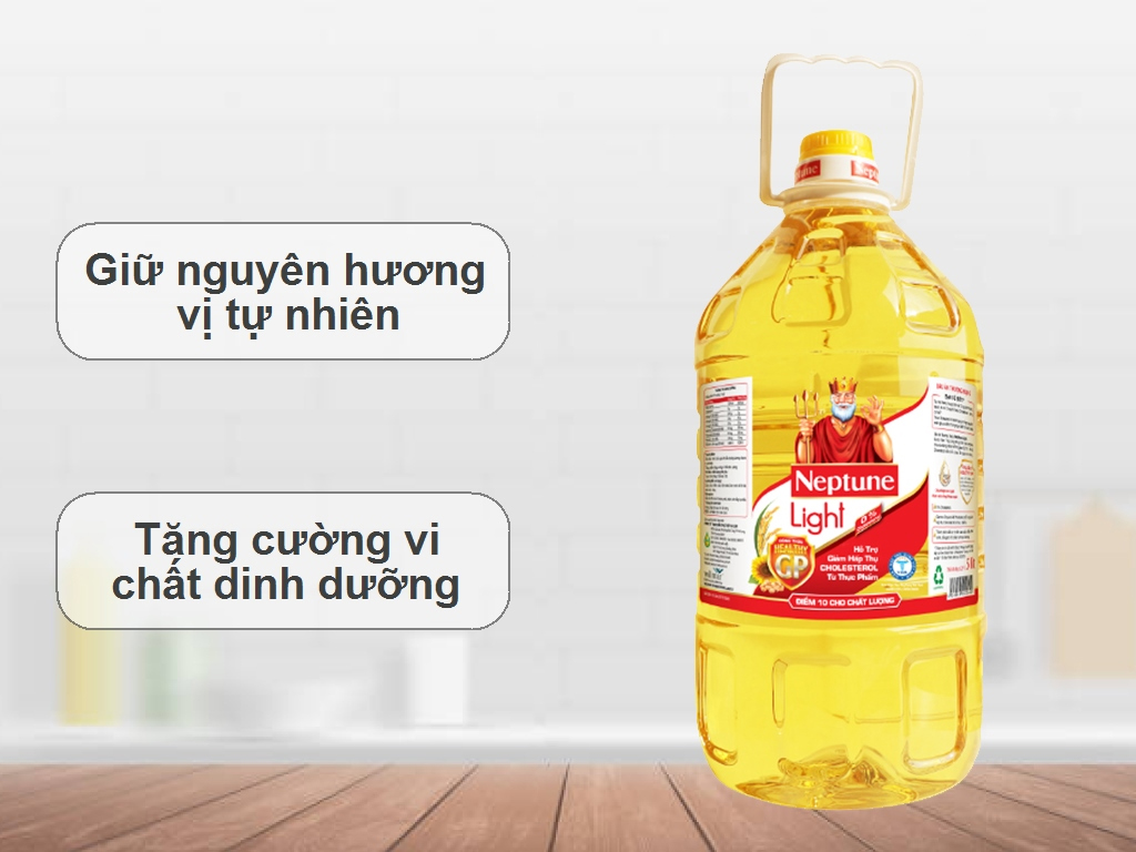 Một điểm nổi bật của dầu Neptune Light là sự kết hợp hoàn hảo giữa ba loại dầu cao cấp như dầu gạo lứt, dầu hướng dương… Điều này không chỉ mang đến sự phong phú về dinh dưỡng mà còn giúp bạn có thể chế biến nhiều món ăn khác nhau, từ chiên, xào đến trộn salad. Công thức Healthy GP của Neptune còn giúp cơ thể bạn giảm hấp thu cholesterol từ thực phẩm, mang lại lợi ích thiết thực cho sức khỏe.