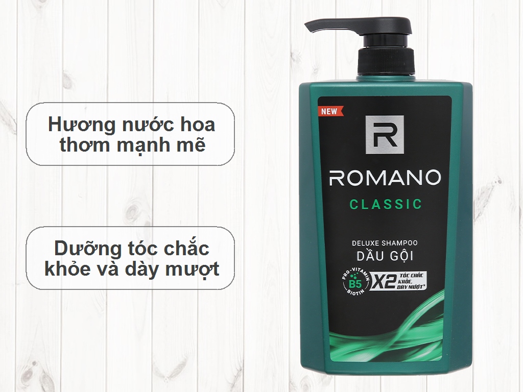 Dầu gội Romano cũng nổi tiếng với hương thơm nam tính, lịch lãm, mang lại cảm giác sảng khoái và tươi mới cho người dùng. Với công thức cải tiến, sản phẩm này không chỉ giúp tóc chắc khỏe mà còn có khả năng giữ hương lâu trên tóc. Đặc biệt, phiên bản Classic của dầu gội Romano còn chứa Pro Vitamin B5 và menthol, giúp sạch gàu và mát lạnh da đầu, tạo cảm giác thoải mái cho người sử dụng.