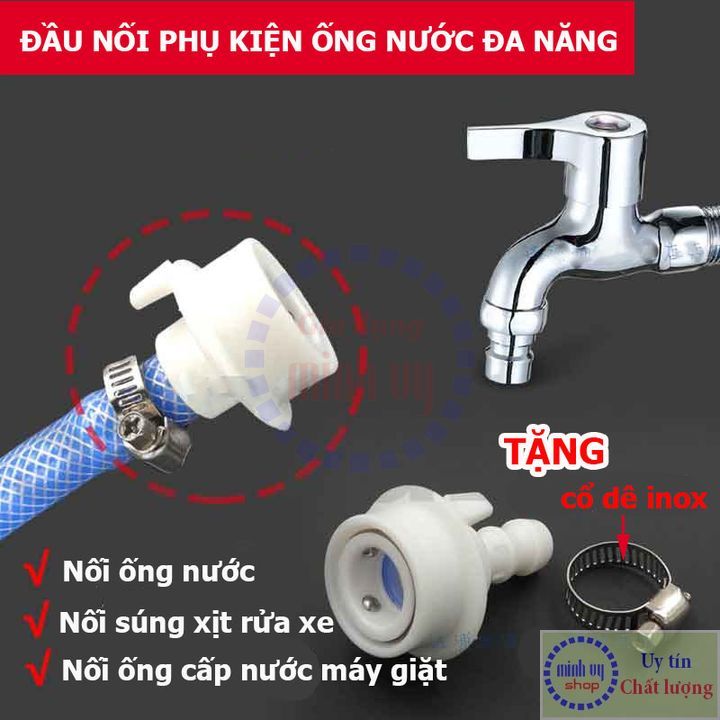 Đầu nối nhanh ống nước máy giặt là “người hùng thầm lặng” giúp bạn kết nối dây cấp nước với vòi một cách dễ dàng, chắc chắn, tránh rò rỉ và tiết kiệm thời gian.