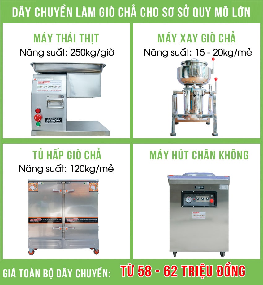 Dây chuyền sản xuất giò chả hiện đại của Viễn Đông có giá khoảng 29.300.000 VND cho tổng 4 sản phẩm, bao gồm máy thái thịt, máy xay giò, tủ hấp và máy hút chân không. Với dây chuyền này, cơ sở của bạn có thể sản xuất lên đến 30kg giò chả mỗi ngày, đáp ứng nhu cầu tiêu dùng ngày càng cao.