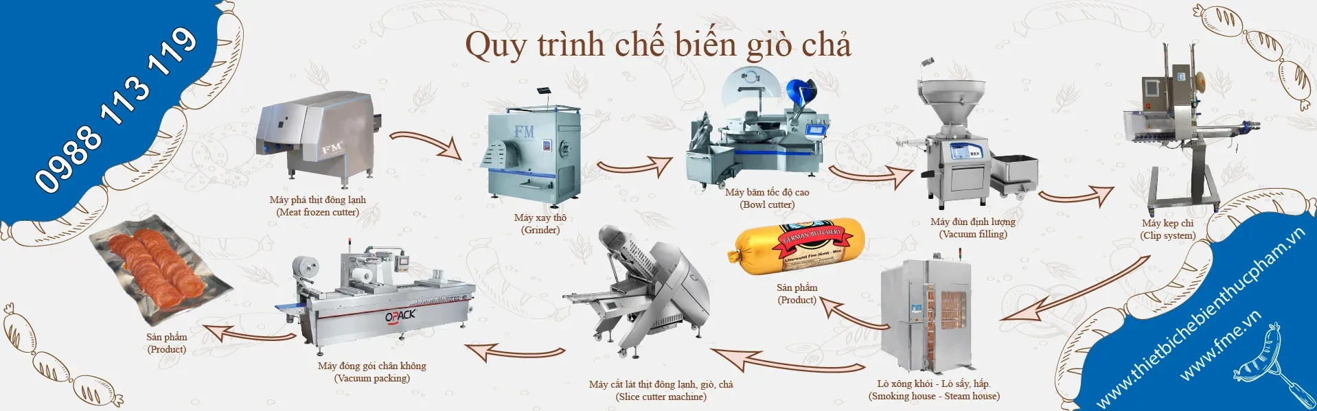 Giò chả là món ăn truyền thống được ưa chuộng tại Việt Nam, xuất hiện trong các bữa tiệc, ngày lễ hay bữa cơm gia đình. Để đáp ứng nhu cầu ngày càng cao về chất lượng và sản lượng, các dây chuyền sản xuất giò chả hiện đại đã ra đời, giúp quá trình chế biến tối ưu, tiết kiệm thời gian và công sức. Bài viết sau sẽ giới thiệu chi tiết về các thiết bị chính trong dây chuyền sản xuất giò chả như máy xay, máy quết công nghiệp, máy định hình, máy hút chân không, máy hấp chín, cùng quy trình làm giò chả và ưu điểm, giá thành của dây chuyền này.
