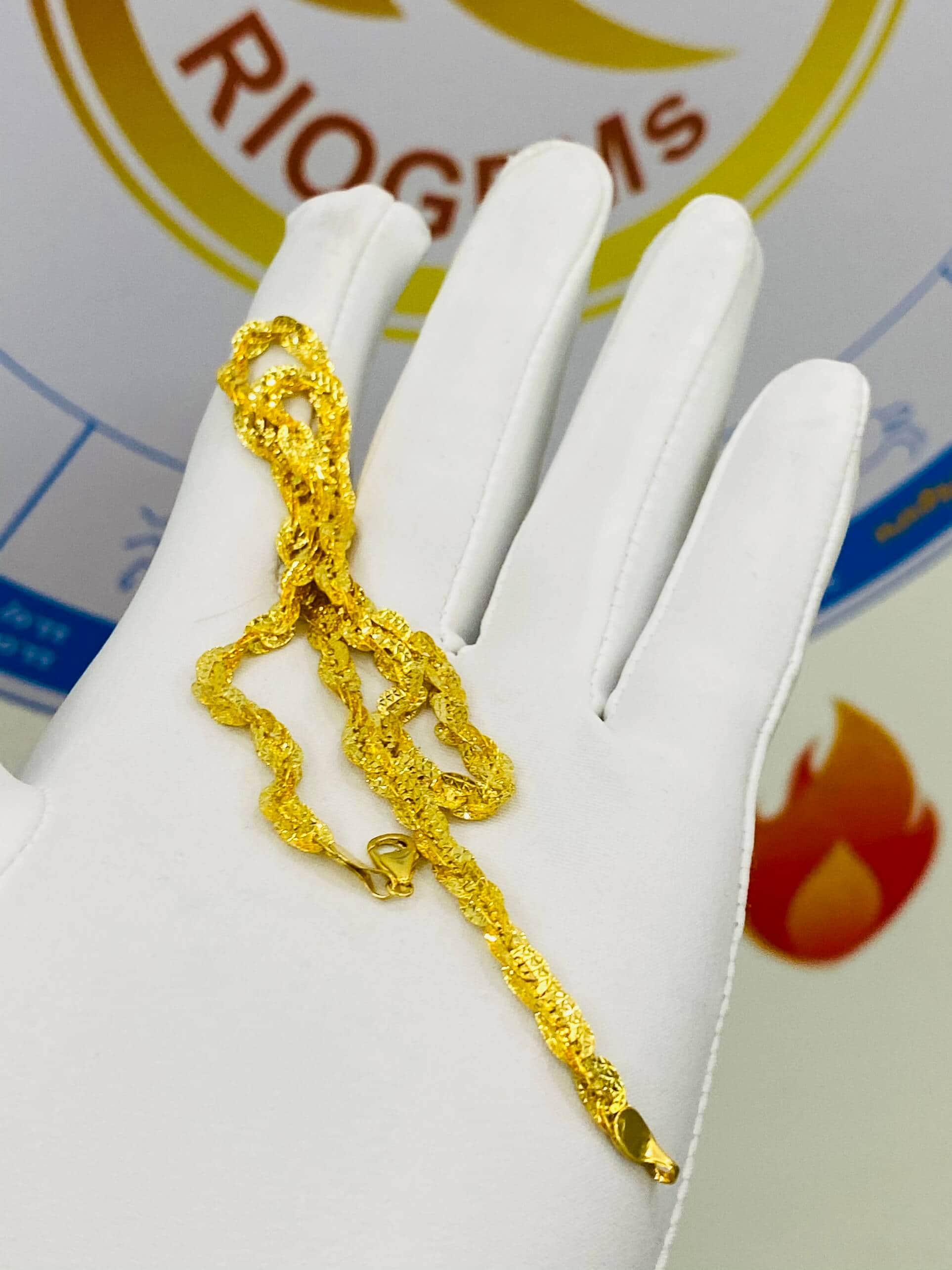 Giá dây chuyền vàng nam 9999 loại 2 chỉ hiện nay thường dao động trong khoảng từ 10 đến 12 triệu đồng, tùy vào kiểu dáng và độ phức tạp của thiết kế. Với vàng 9999 – tức là vàng tinh khiết đến 99,99%, dây chuyền không chỉ có giá trị về mặt vật chất mà còn mang ý nghĩa phong thủy, giúp các quý ông thể hiện sự sang trọng, đẳng cấp một cách tinh tế.