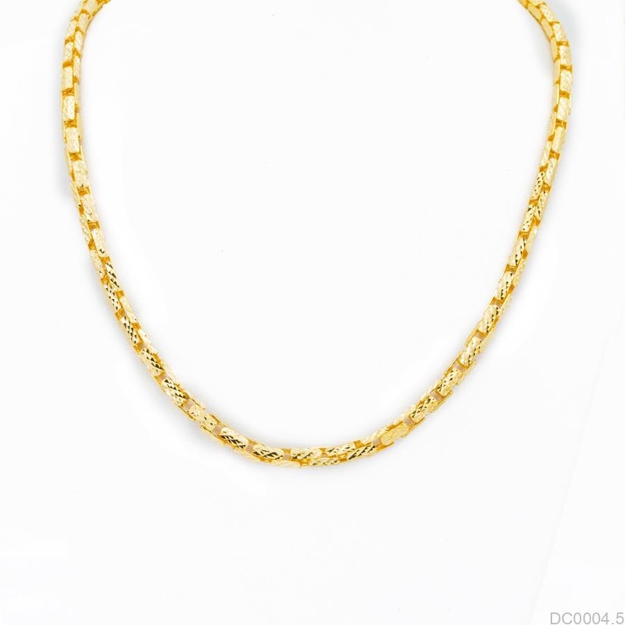 Khối lượng 2 chỉ vừa đủ để tạo nên một chiếc dây chuyền có trọng lượng vừa phải, không quá nặng nhưng vẫn đủ để gây ấn tượng. Mẫu dây chuyền này thường được thiết kế tinh tế, đa dạng về kiểu dáng như mắc xích lỗ lưới, kiểu trúc hay kiểu cong Hàn Quốc, giúp các quý ông dễ dàng lựa chọn theo sở thích và phong cách cá nhân.