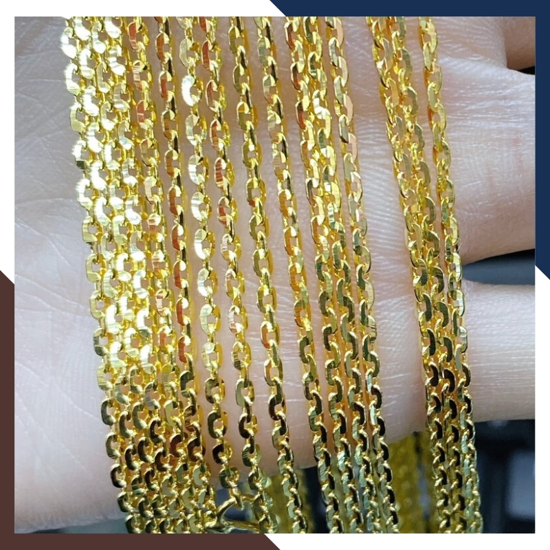 Điểm đặc biệt của dây chuyền 2 chỉ là sự đa dạng về kiểu dáng. Bạn có thể chọn dây ống móc, dây lật bằng hay dây móc ống trúc với chiều dài phổ biến từ 43cm đến 52cm, giúp dễ dàng phối hợp với các trang phục khác nhau. Mức giá tham khảo cho loại dây này thường dao động khoảng 6 đến 7 triệu đồng, rất hợp lý để sở hữu một món trang sức vàng 18K chất lượng và bền lâu.