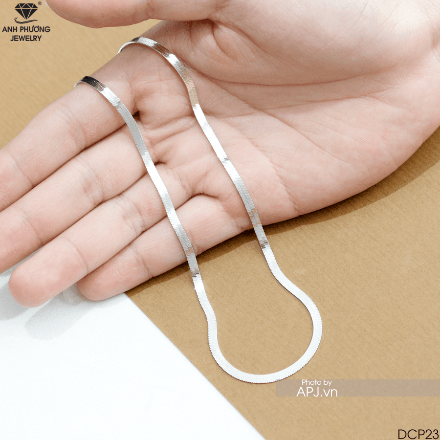 Dây chuyền vàng trắng nam thường có thiết kế tối giản nhưng rất tinh tế, dễ dàng phối hợp với nhiều phong cách trang phục khác nhau, từ lịch lãm đến cá tính. Đây không chỉ là món phụ kiện giúp tôn lên đẳng cấp mà còn thể hiện cá tính riêng, sự tự tin và phong thái cuốn hút của người đeo. Một số mẫu còn được phủ lớp Rhodium để tăng độ sáng bóng và bền màu, làm tăng thêm giá trị thẩm mỹ cho sản phẩm.
